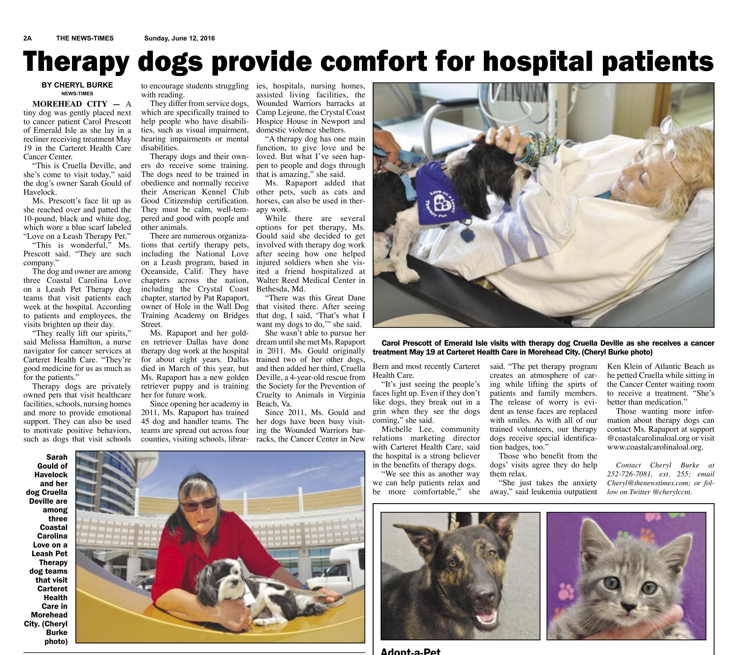 Read this article by Cheryl Burke on how Carteret Health Care's patients benefit from visits with therapy dogs.