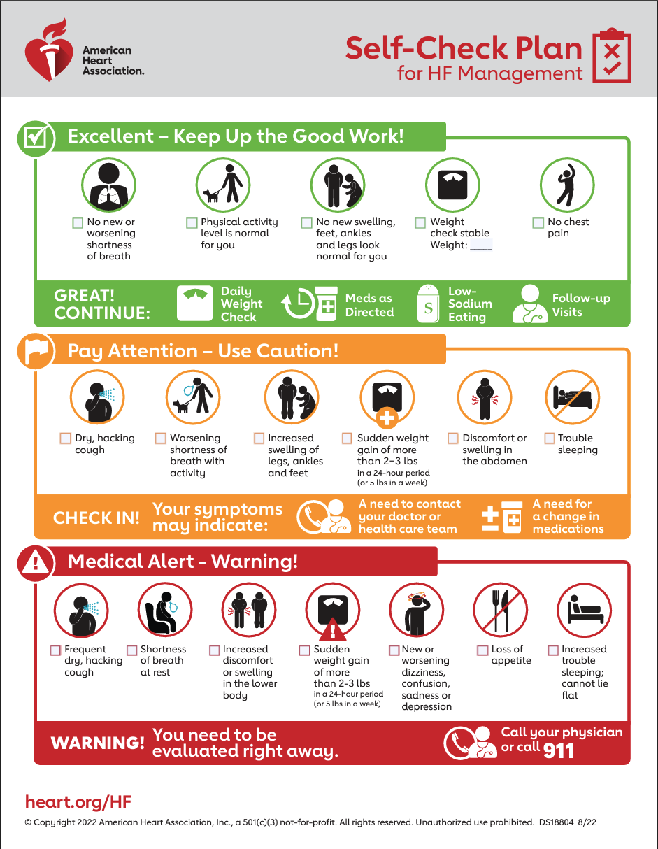 Download this Self-Check Plan for help with tracking your heart failure symptoms.